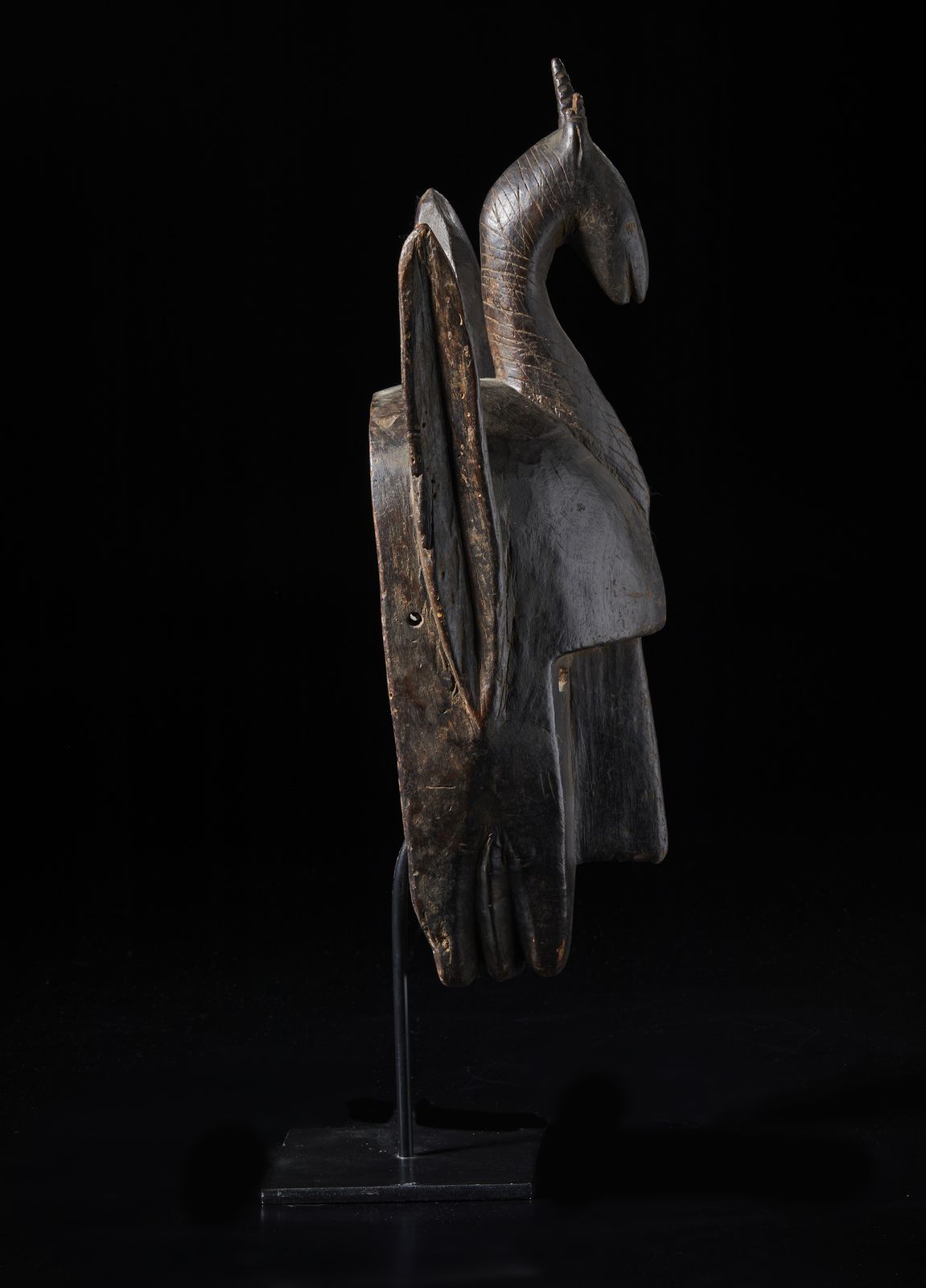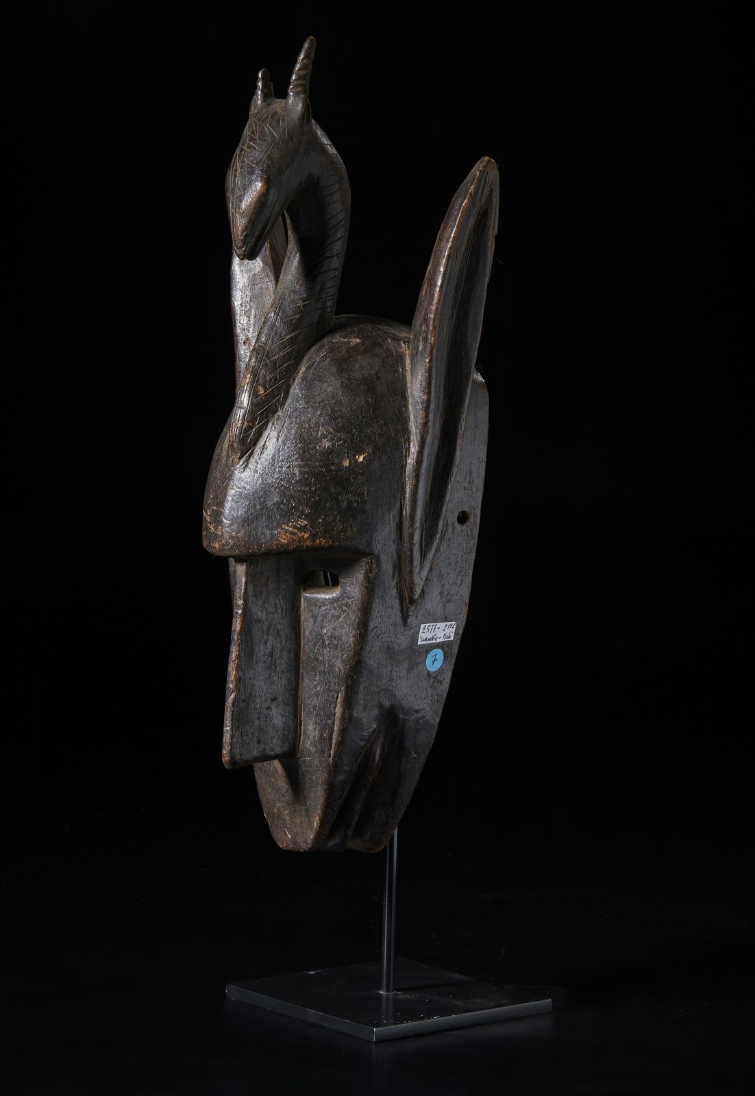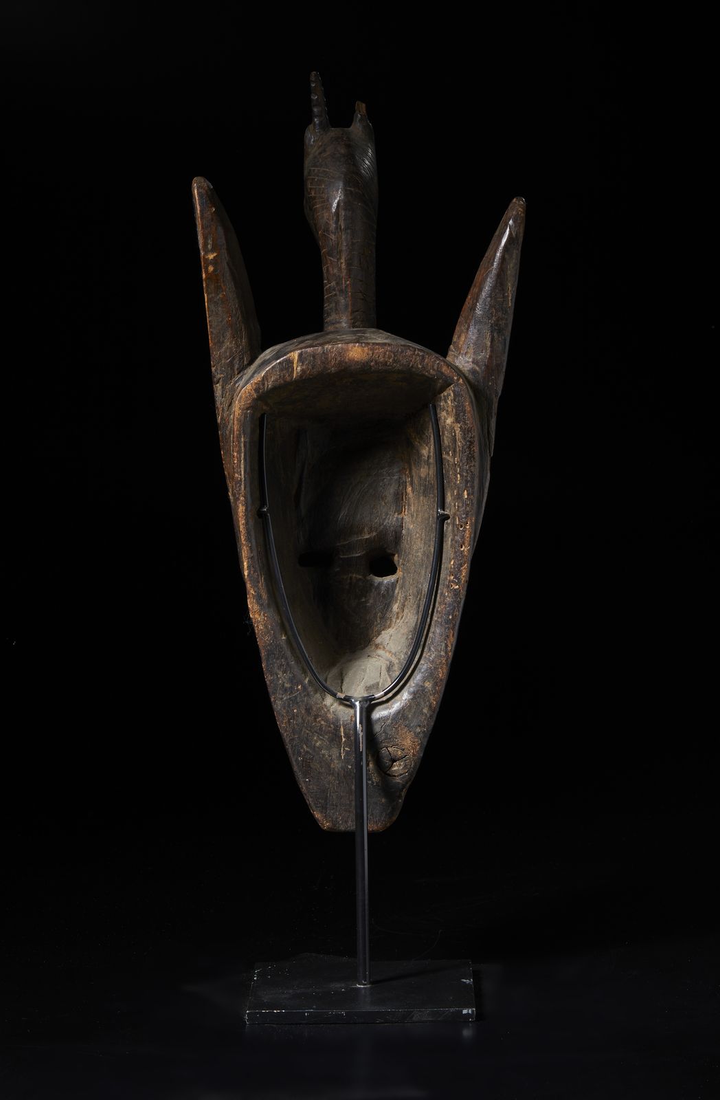 Maschera zoomorfa in forma di iena sormontata da testa di antilope. Legno duro con [..]