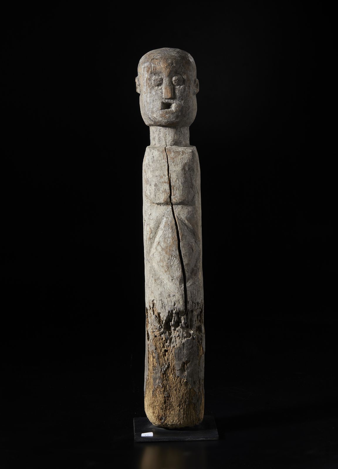 Palo scultura in forma antropomorfa stilizzata. Legno.