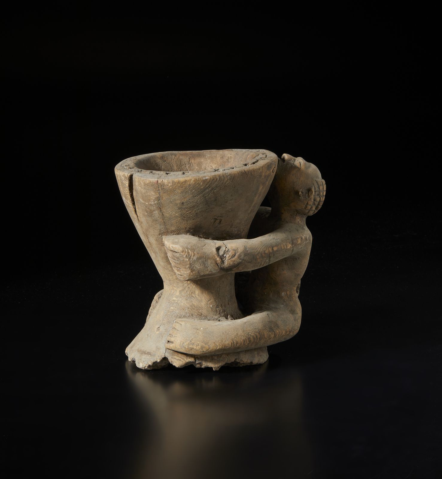 Piccola coppa con figura antropomorfa. Legno a patina naturale.