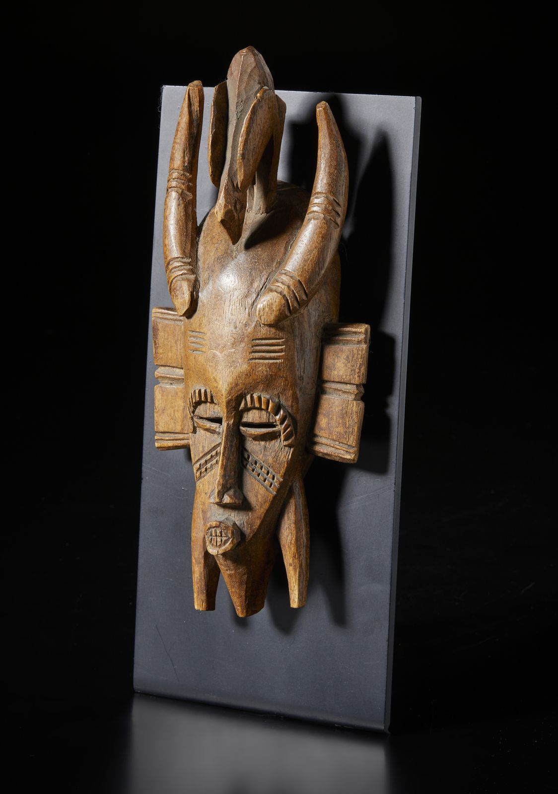 Piccola maschera antropozoomorfa KpelieLegno duro a patina chiara.