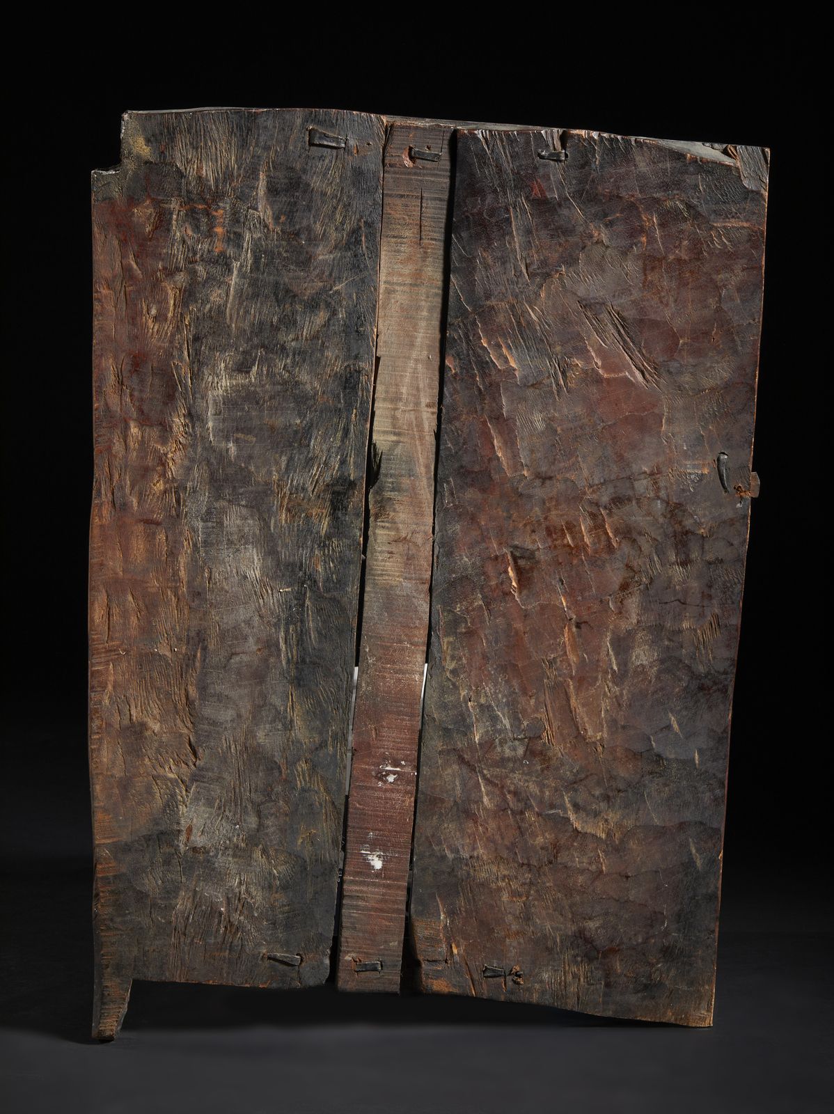 Porta da granaio decorato con figure zoomorfe e antropomorfe. Legno duro a patina [..]