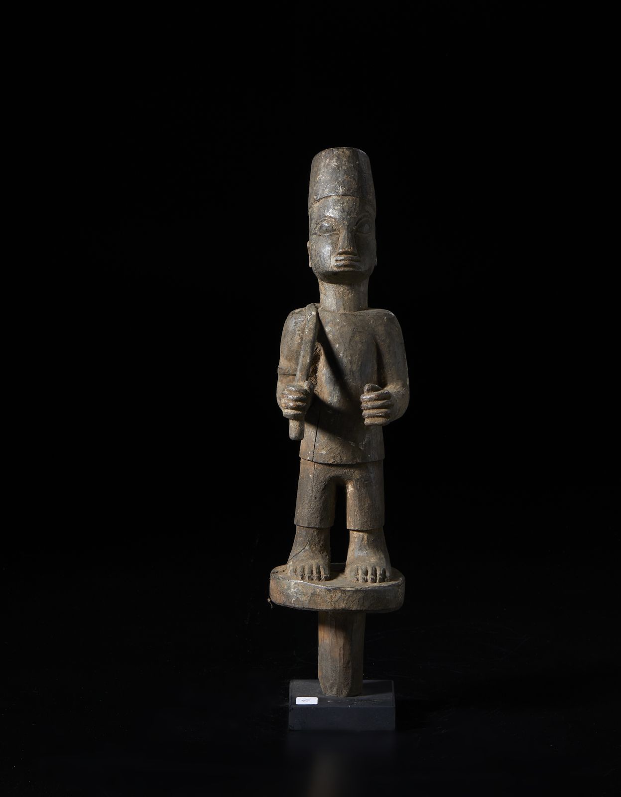 Scettro con figura antropomorfa con insegna di comando e cappello fez. Legno duro [..]