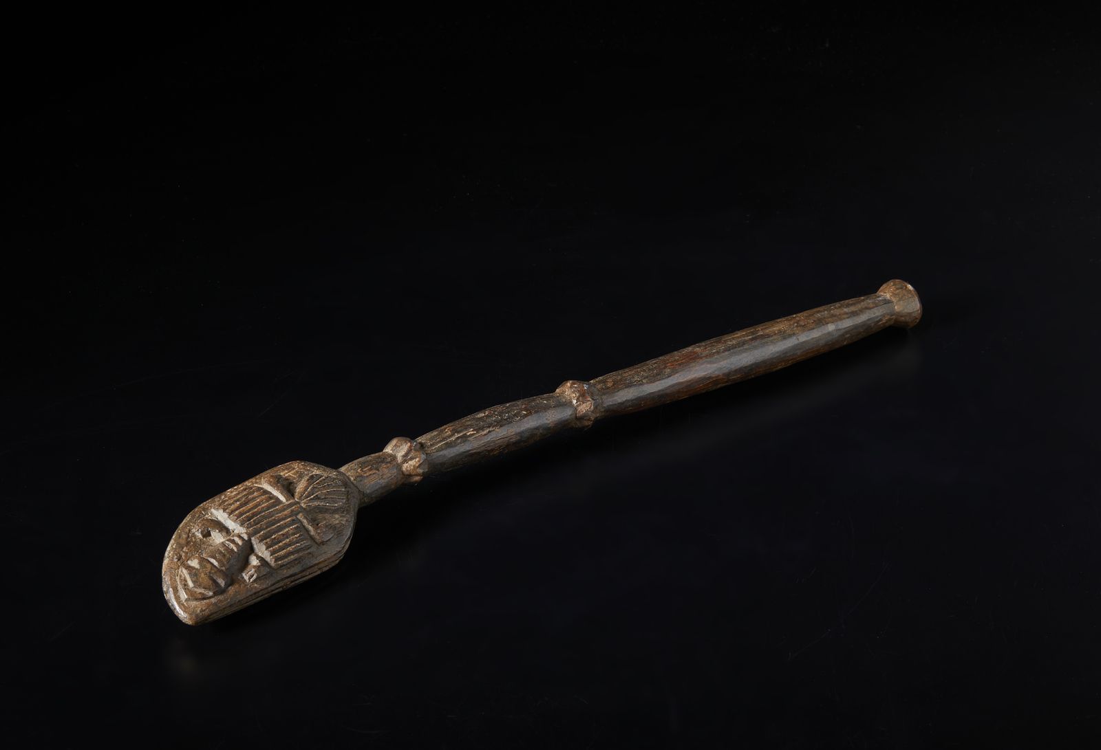 Scettro o Shango con testa antropomorfa. Legno duro a patina scura.