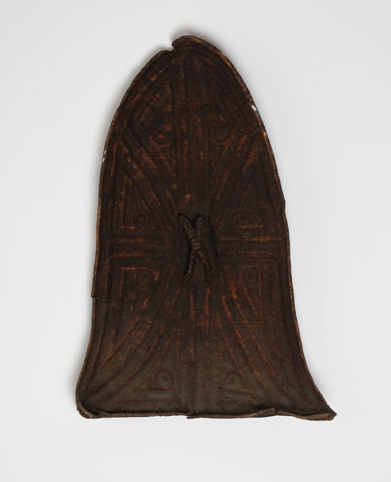 Scudo a forma di campana Glagwa con decoro a motivo geometrico in rilievo. Tracce [..]