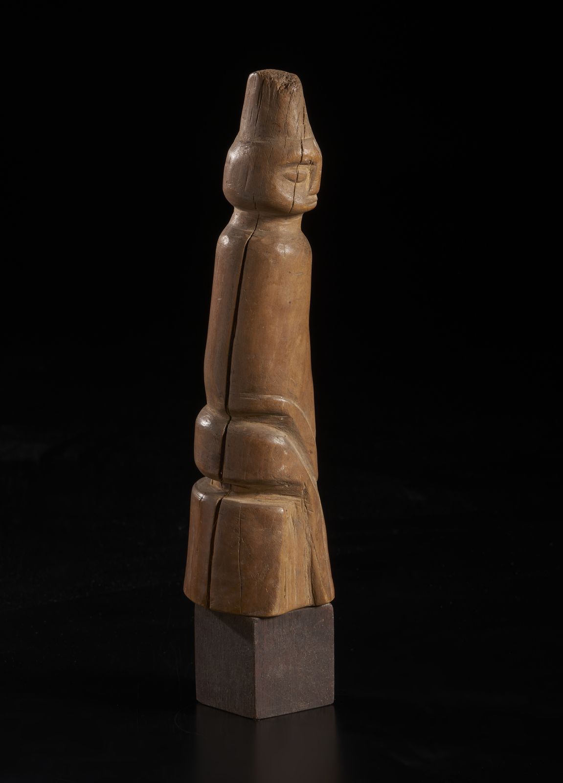 Scultura a forma di corno con figura antropomorfa stilizzata. Legno duro a patina [..]