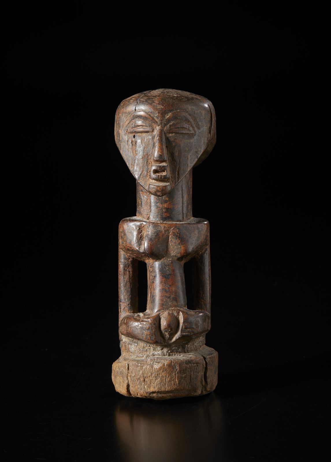 Scultura antropomorfa a mezzo busto. Legno a patina scura.
