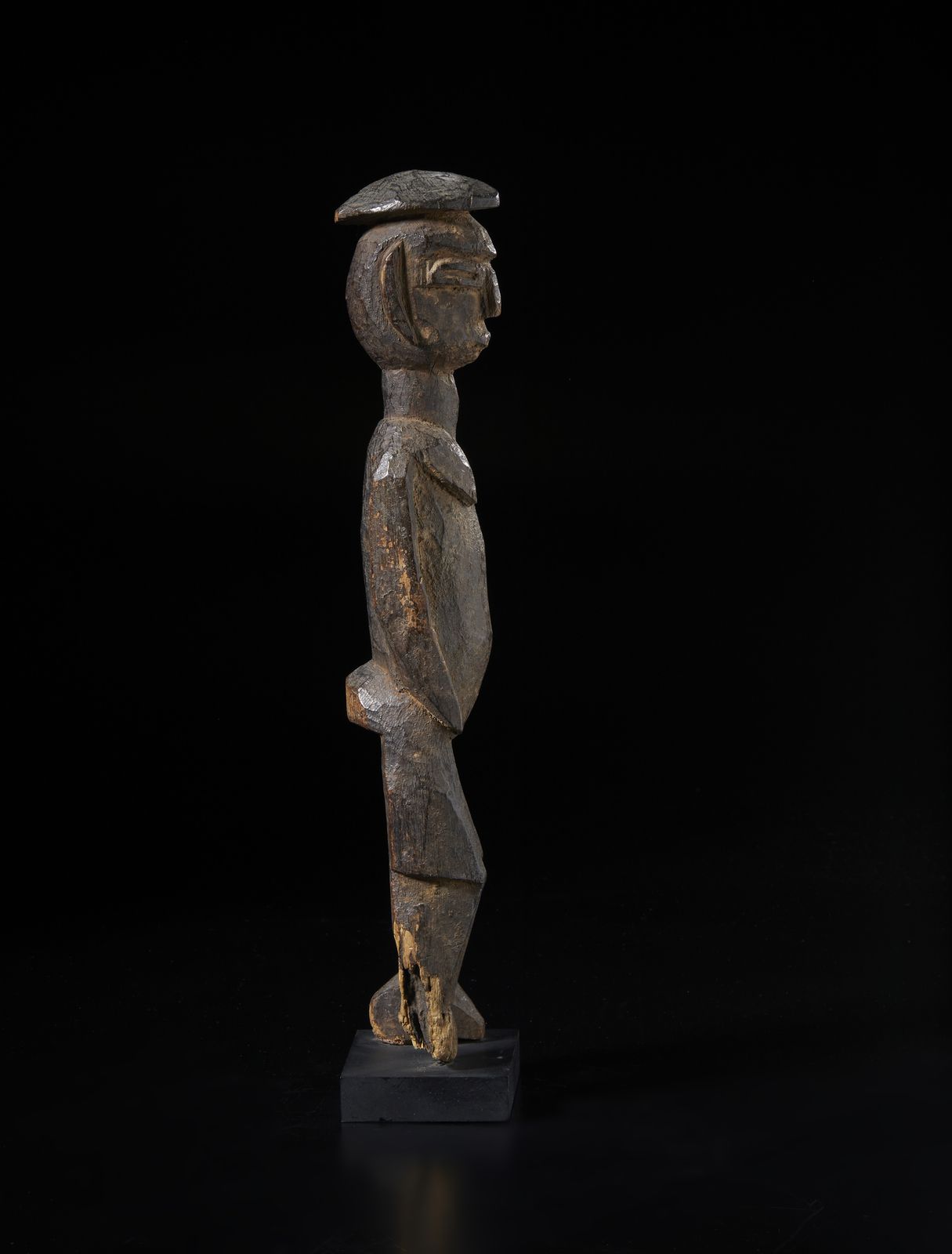 Scultura antropomorfa Bateba. Legno duro a patina scura.