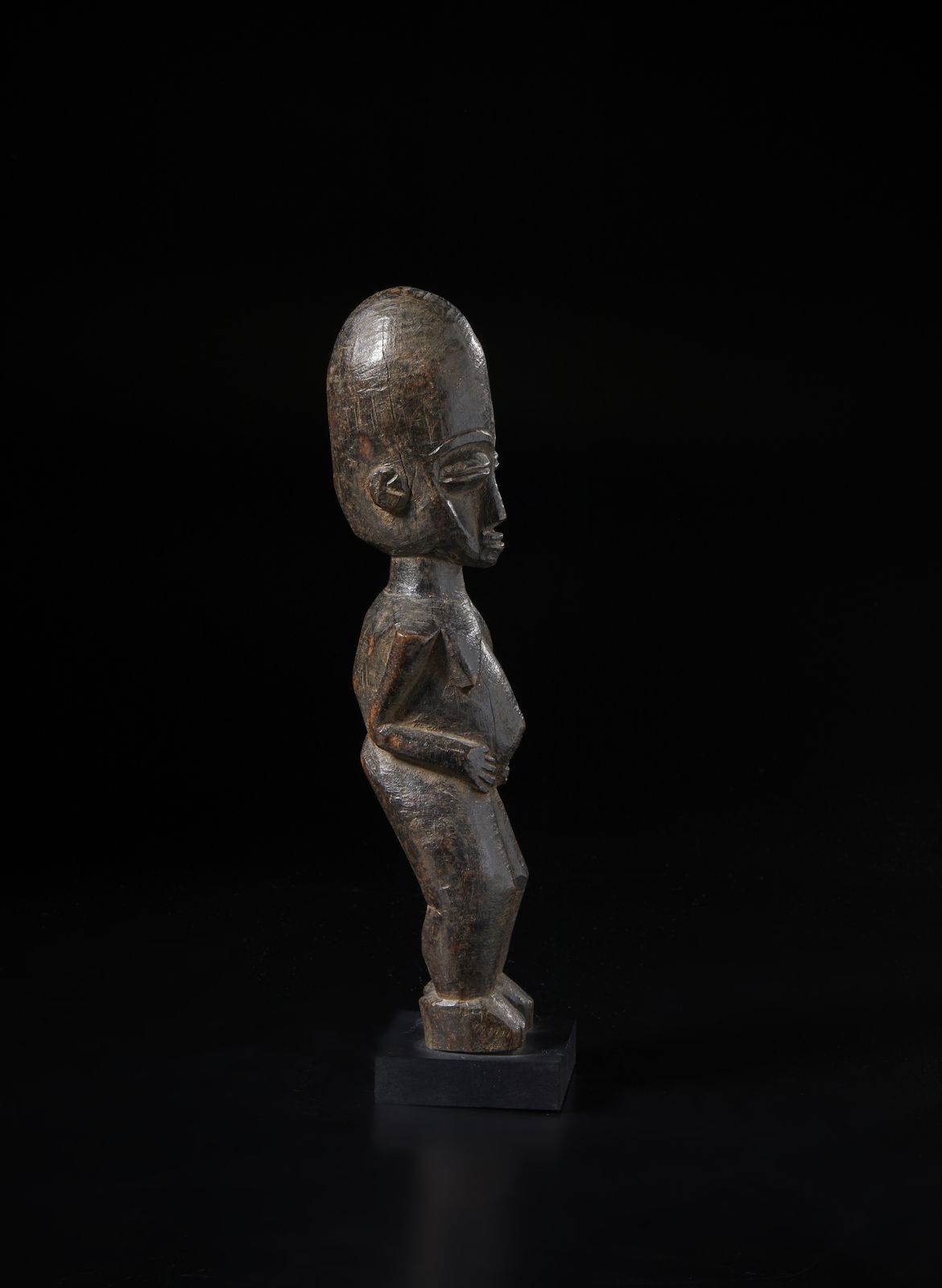 Scultura antropomorfa Bateba.Legno duro a patina scura.