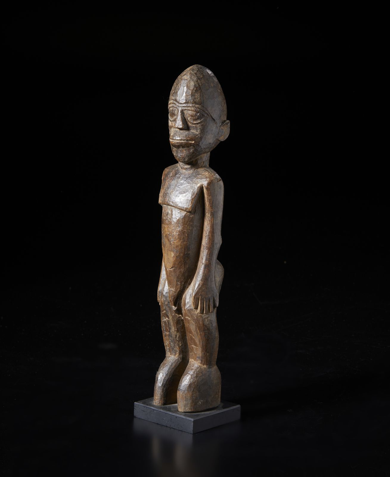 Scultura antropomorfa Bateba.Legno duro con patina marrone.