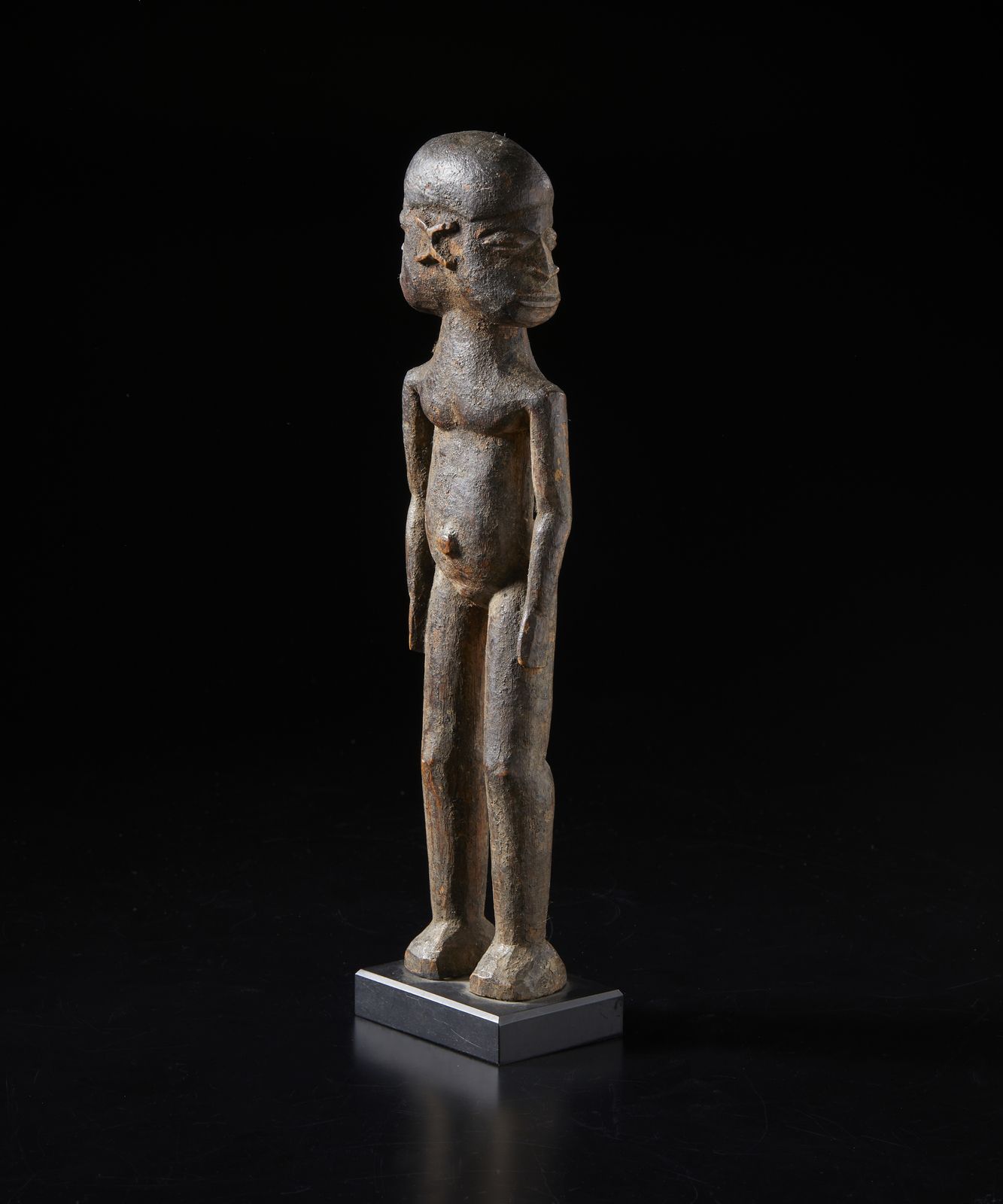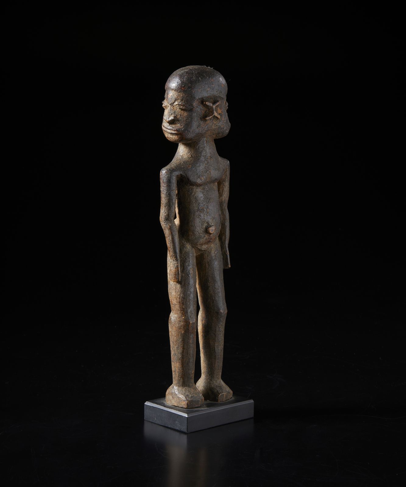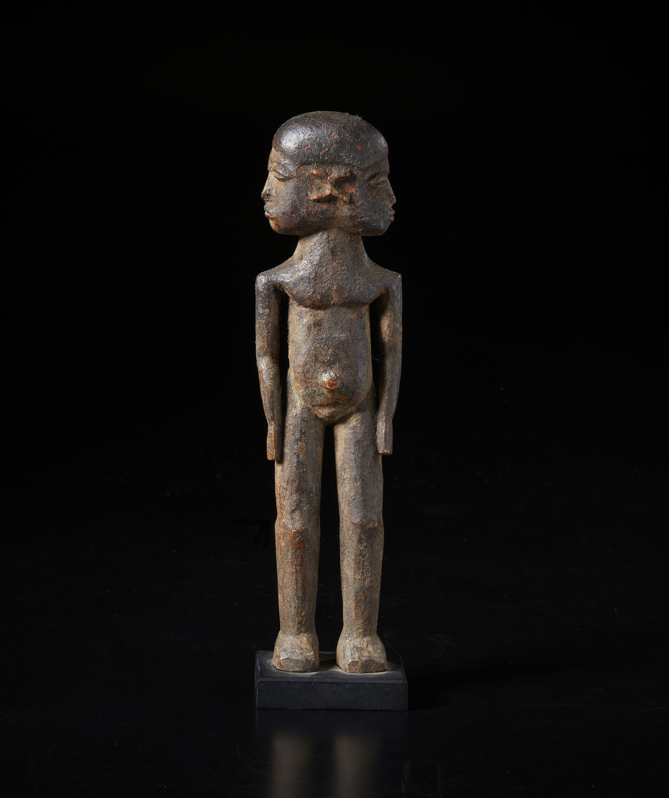 Scultura antropomorfa con due teste Bateba.Legno duro a patina scura.