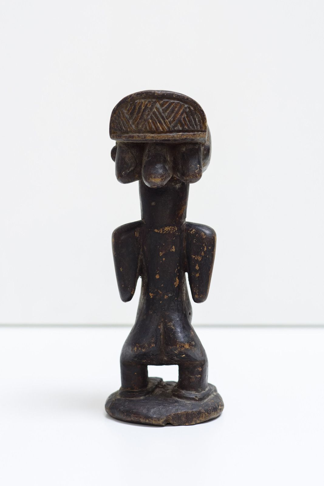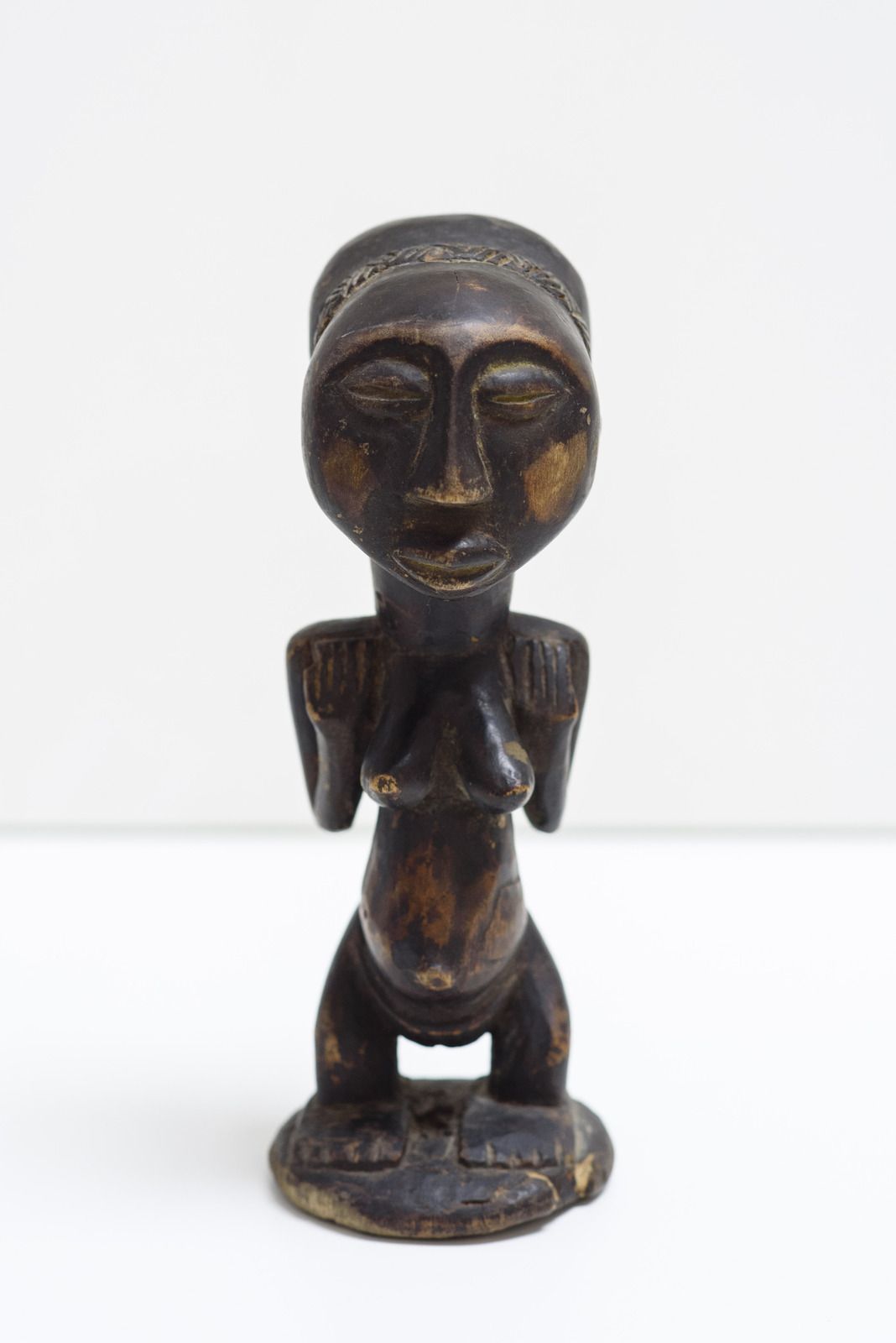 Scultura antropomorfa femminile.Legno duro a patina scura.