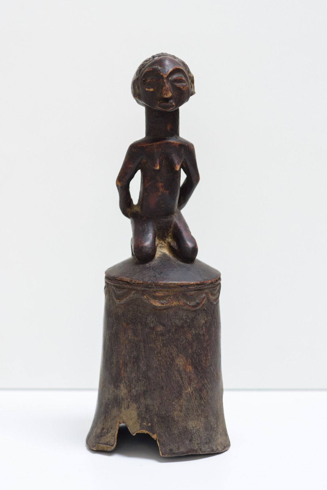 Scultura antropomorfa ginocchio su base a forma di campana.Legno duro a patina s [..]
