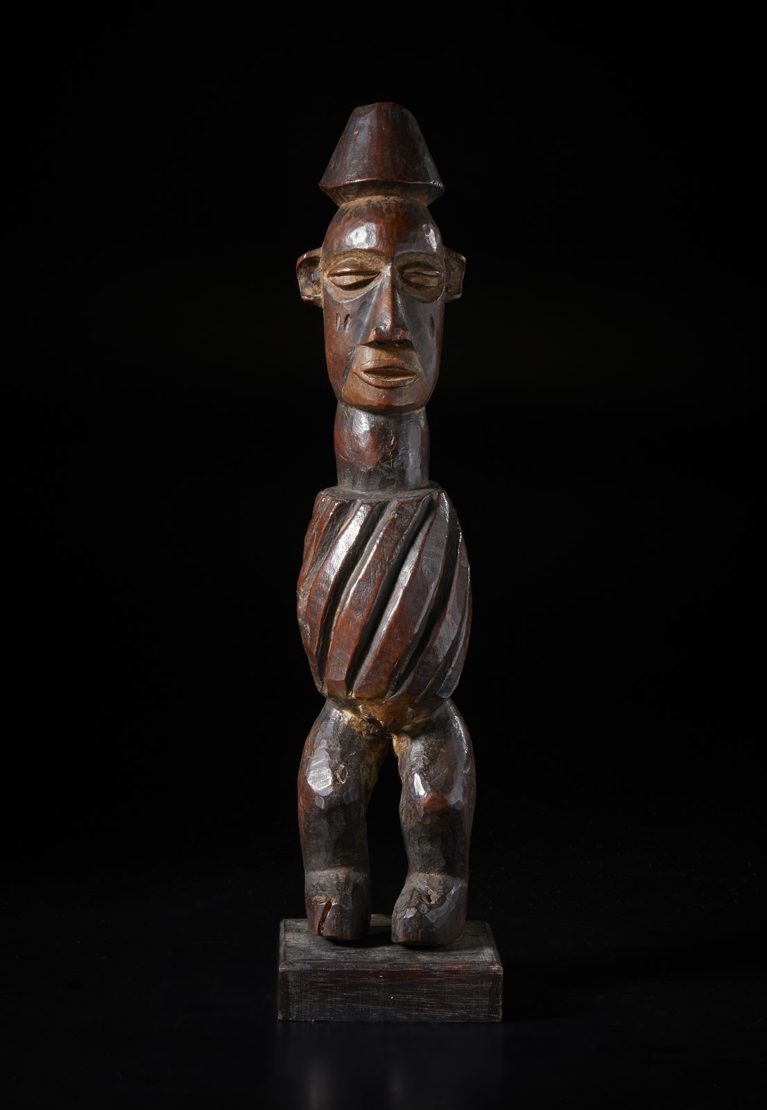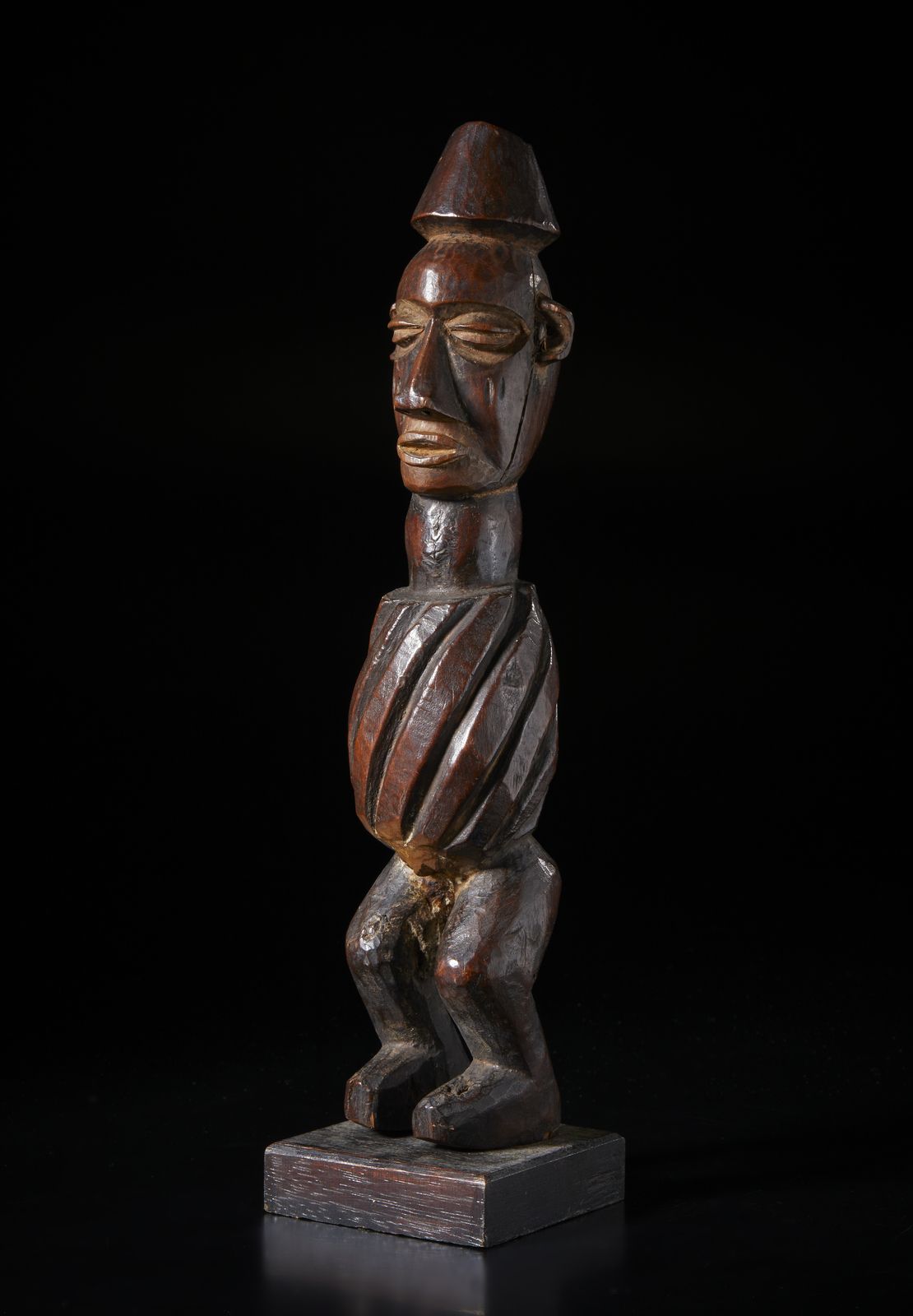 Scultura antropomorfa in forma di feticcio. Legno duro a patina marrone.