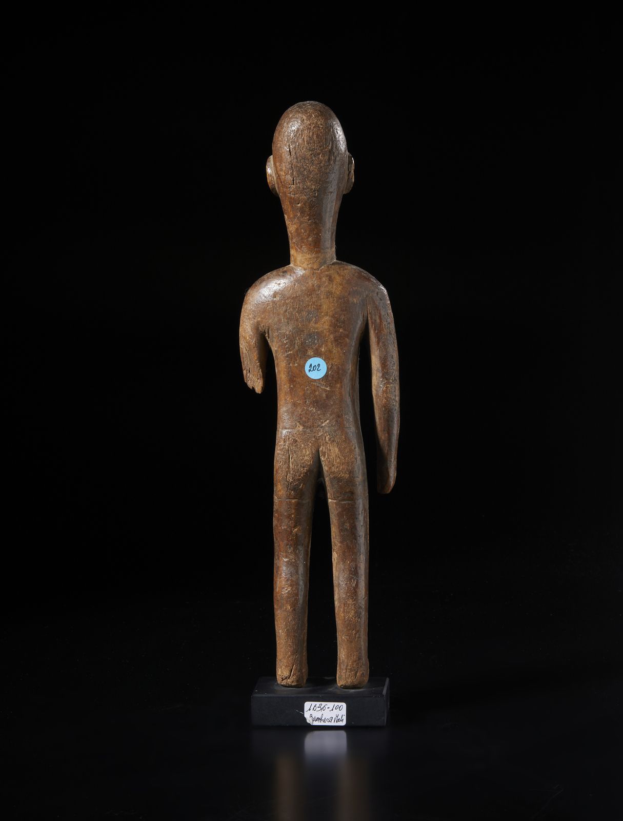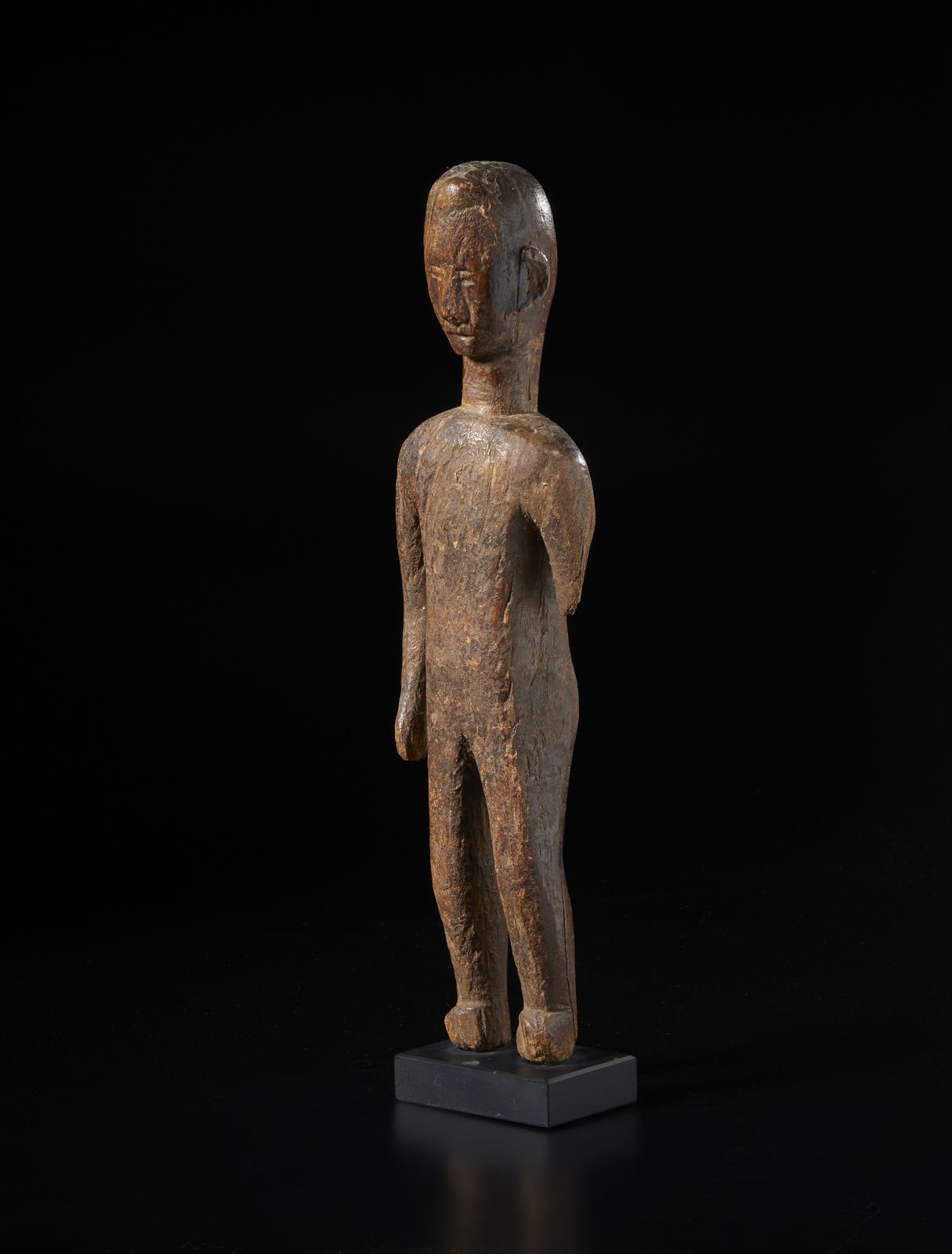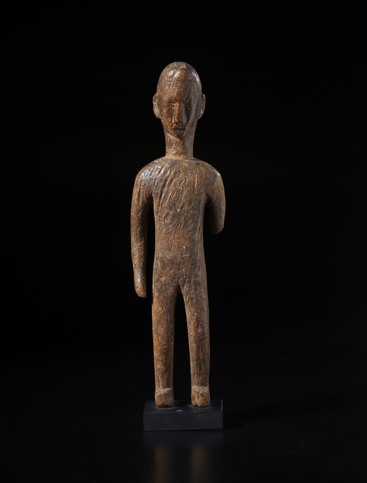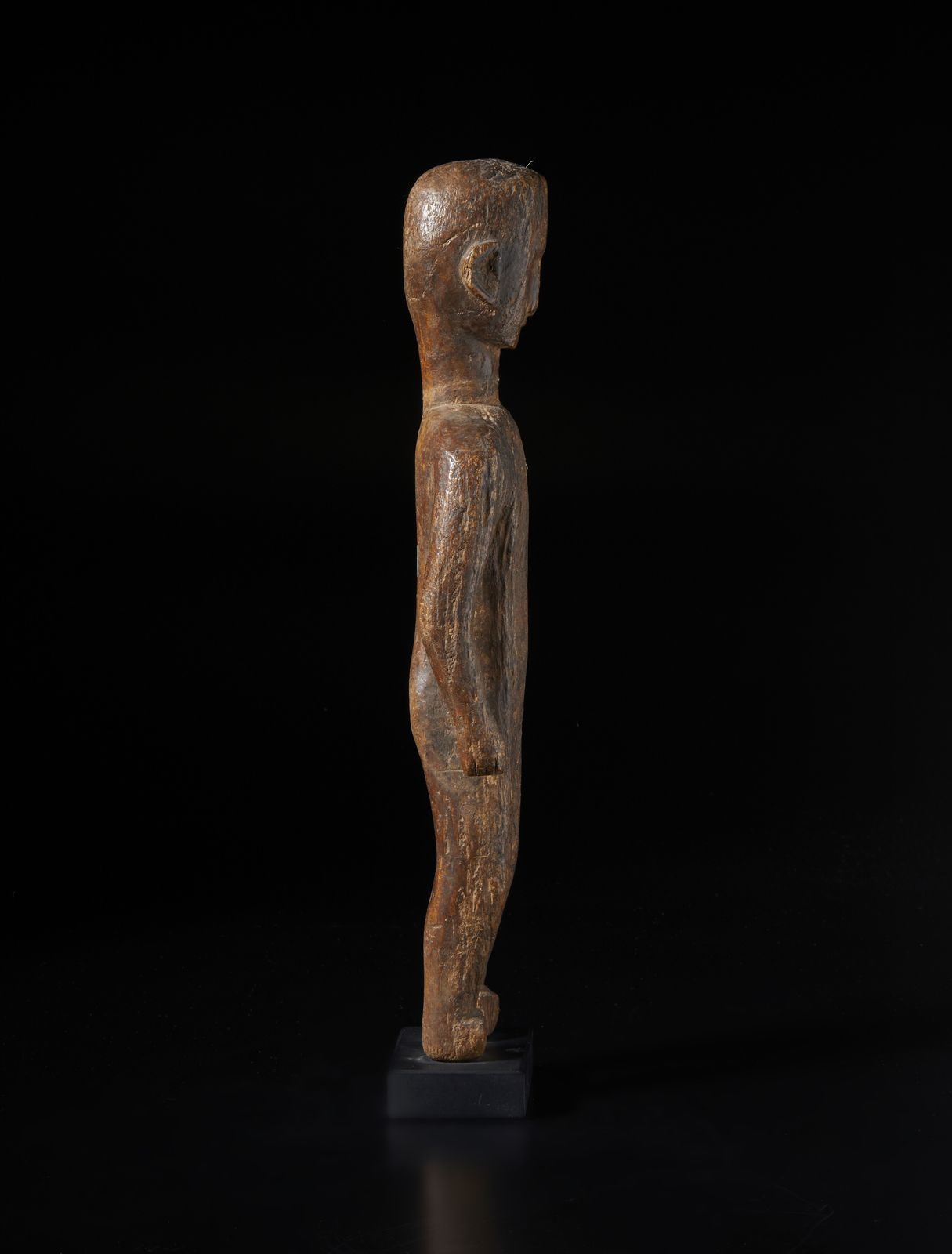 Scultura antropomorfa in piedi. Legno duro a patina naturale.