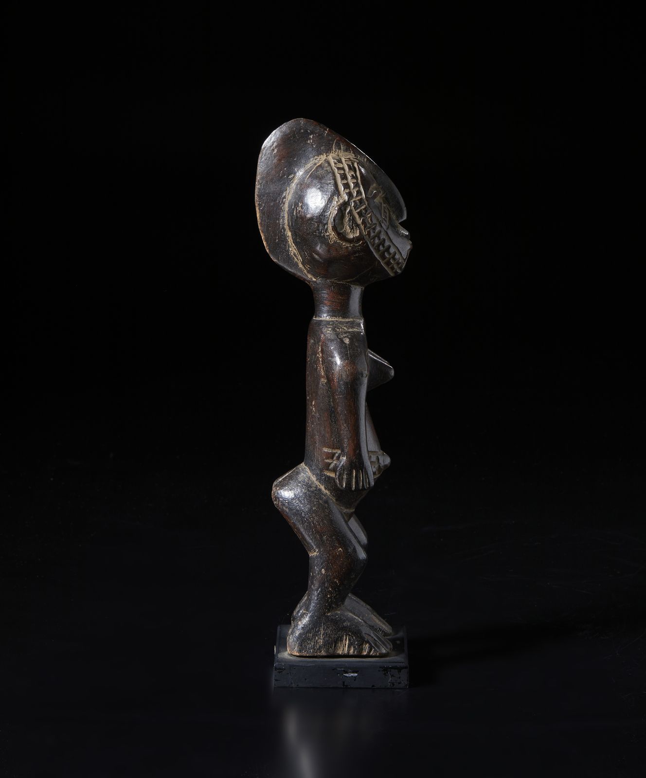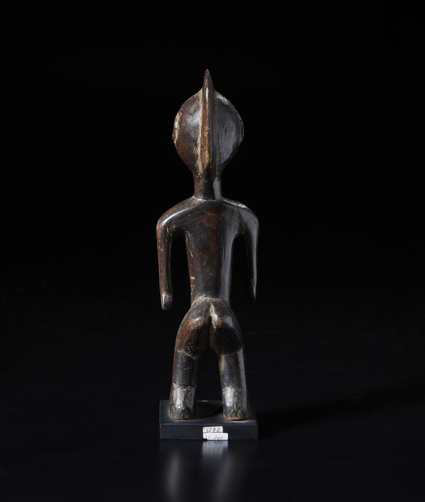 Scultura antropomorfa. Legno a patina scura.