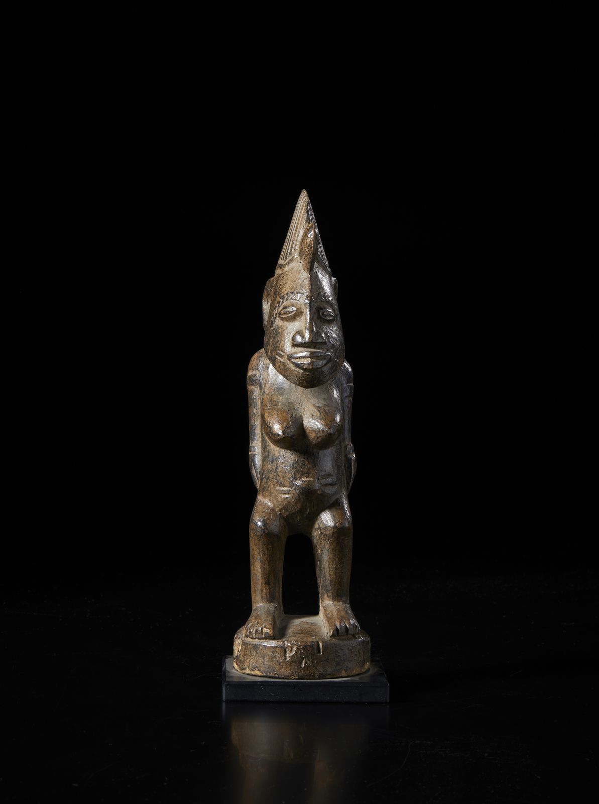 Scultura antropomorfa. Legno duro a patina scura.