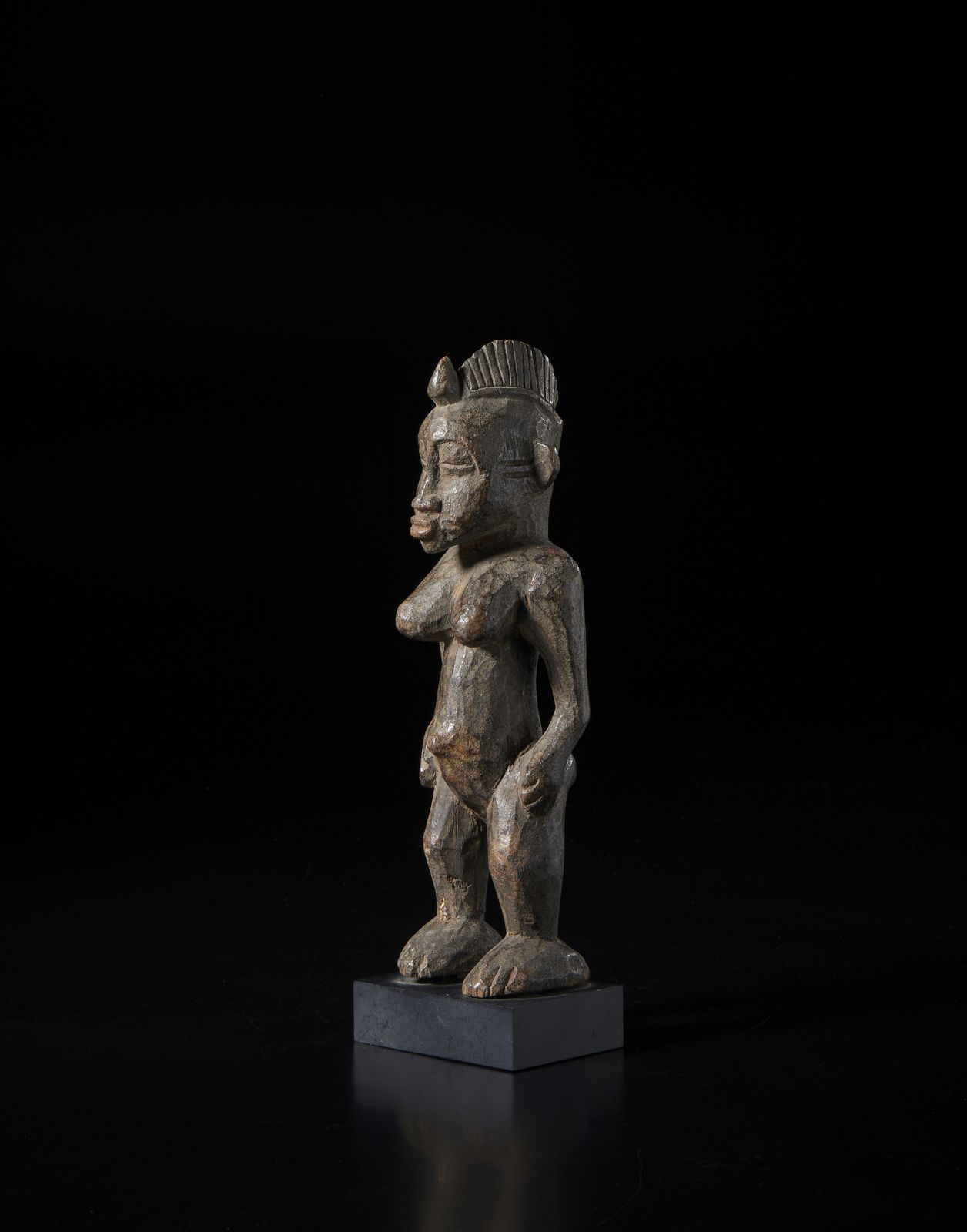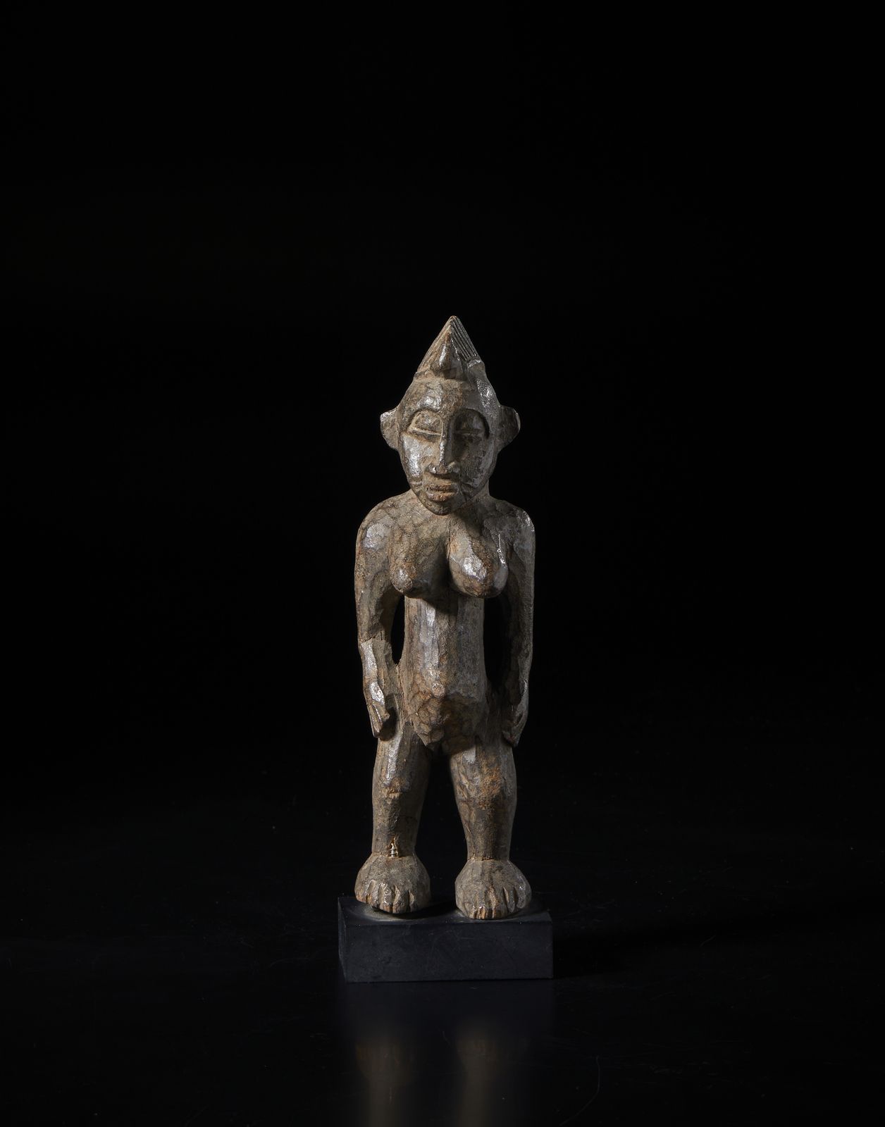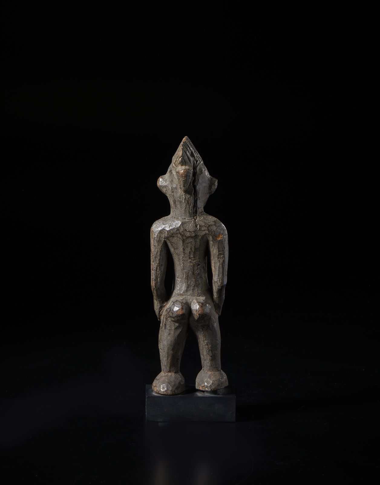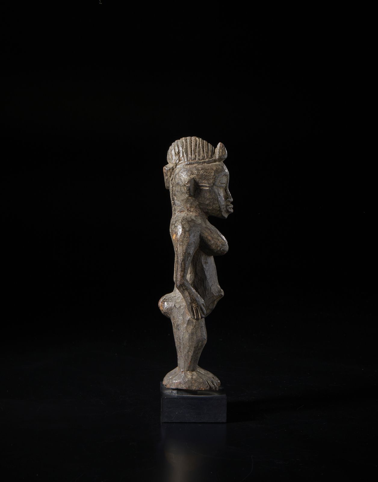 Scultura antropomorfa. Legno duro a patina scura.