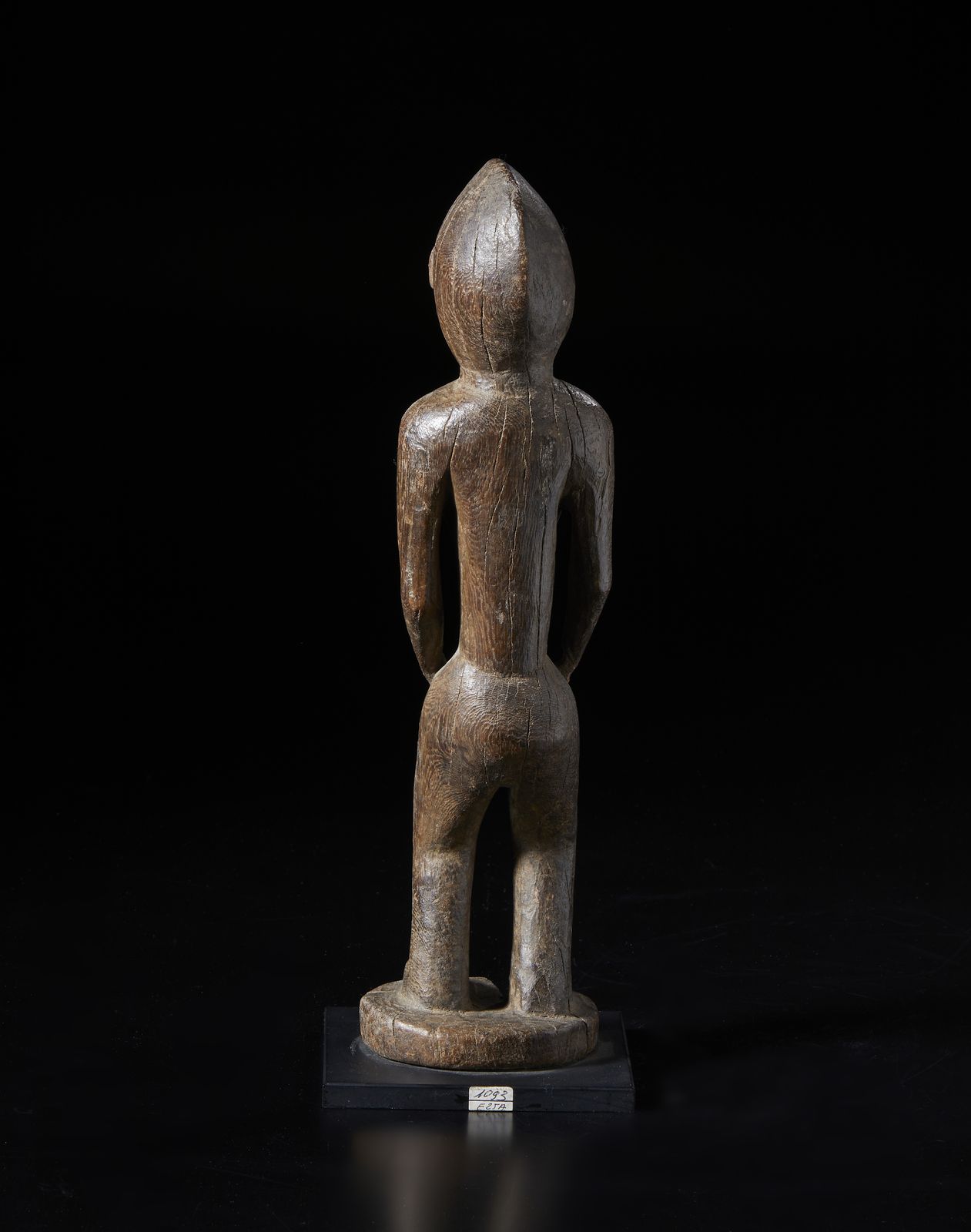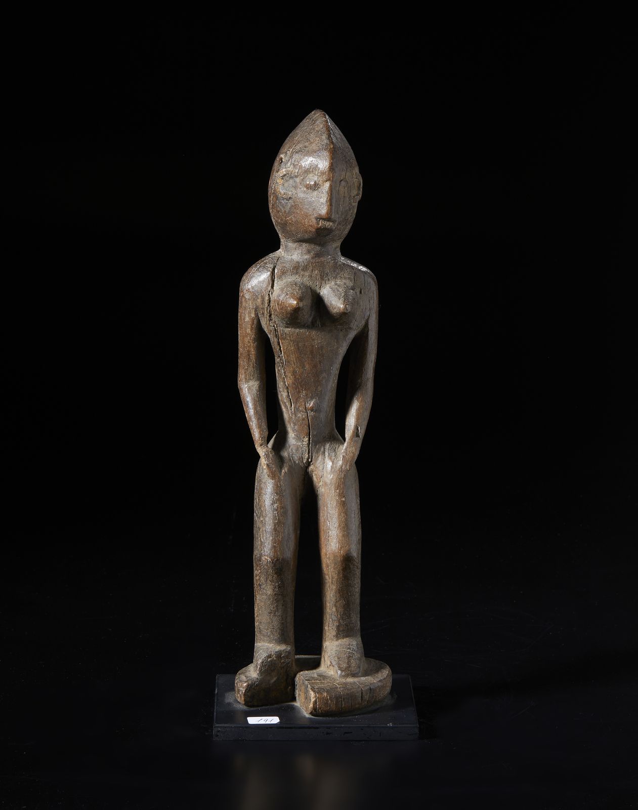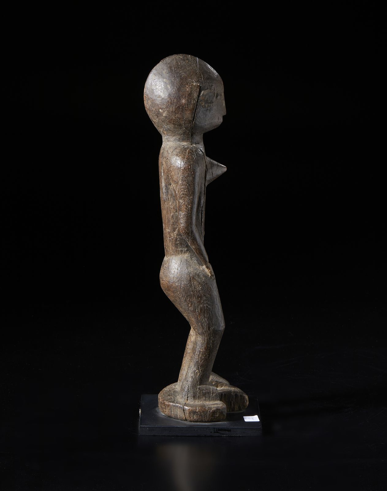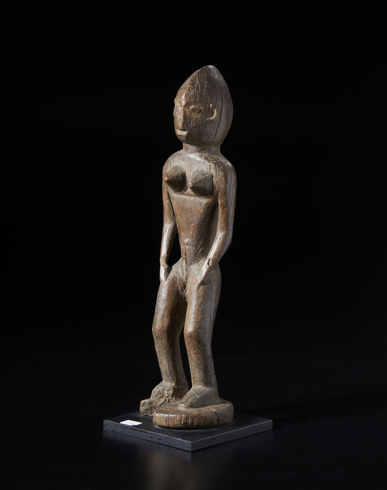 Scultura antropomorfa. Legno duro a patina scura.
