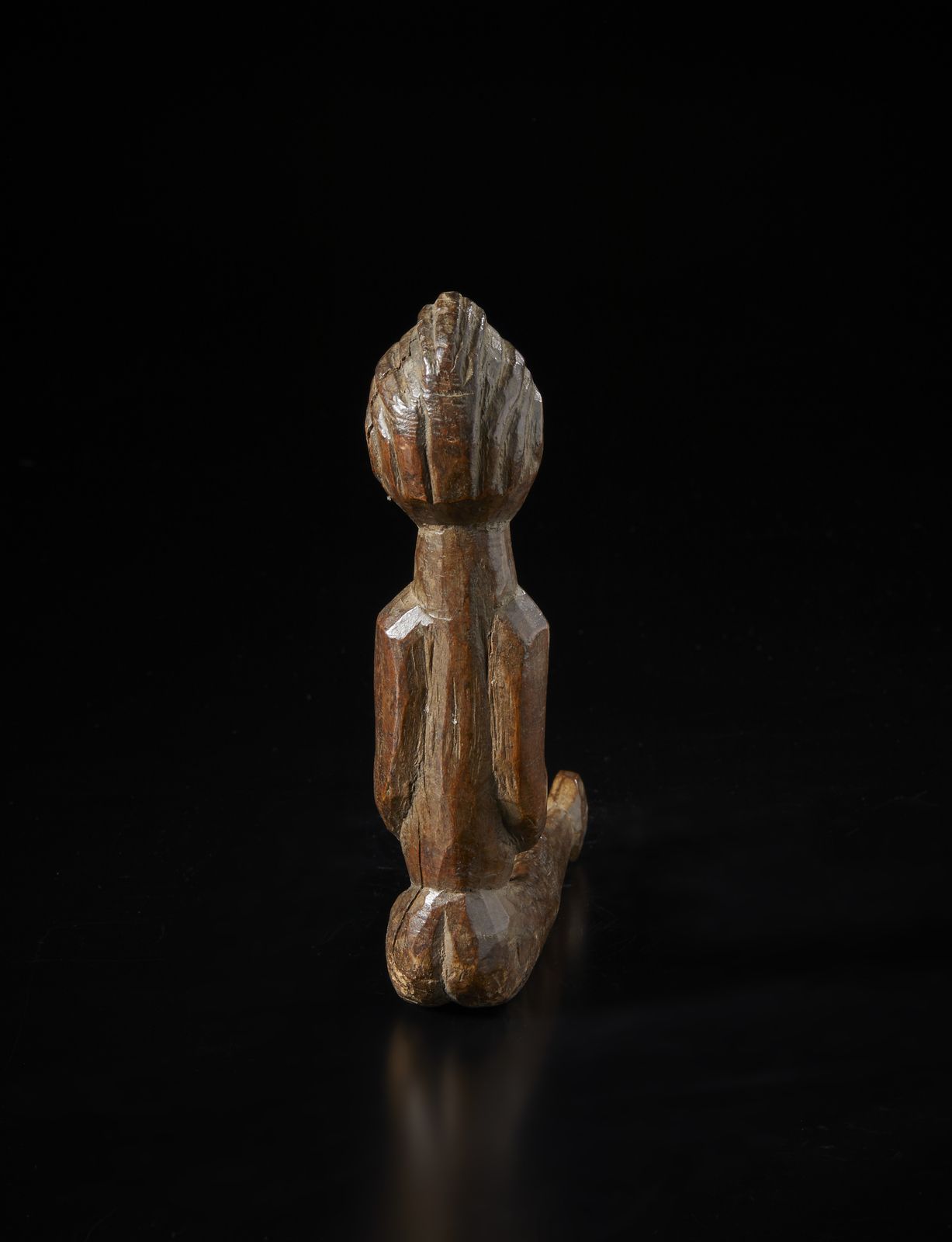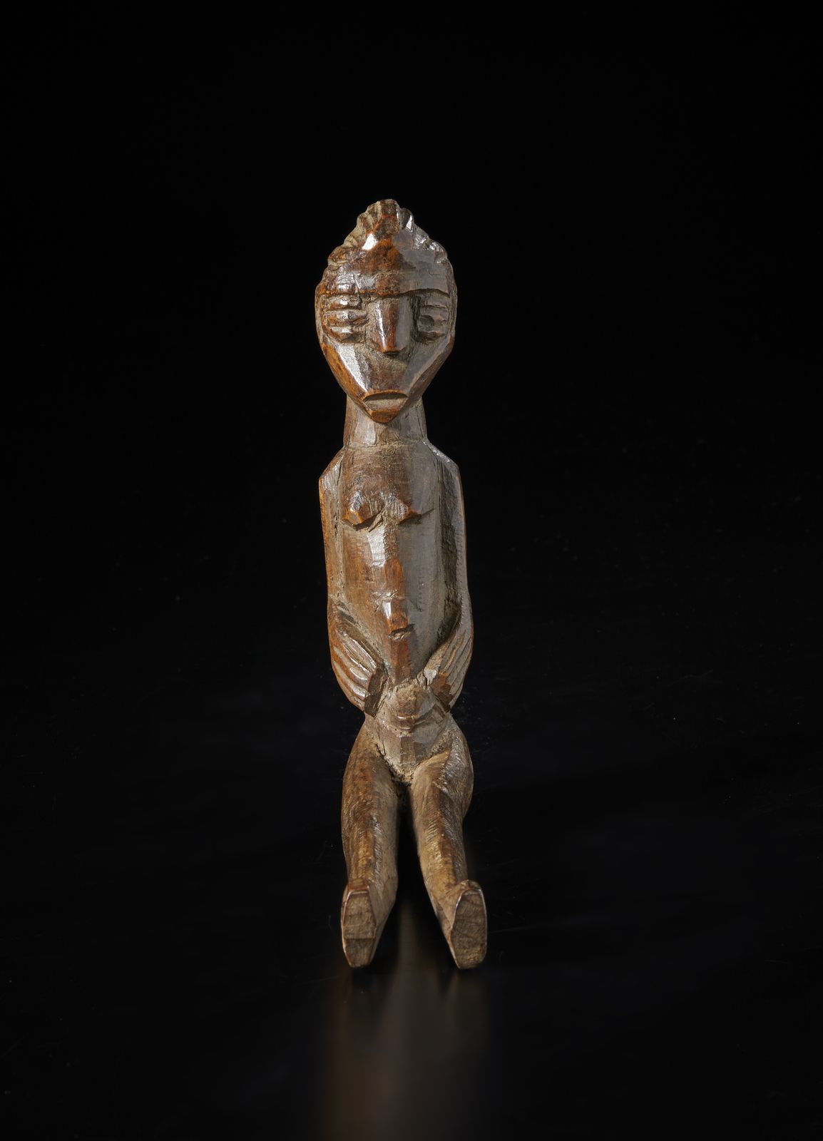 Scultura antropomorfa seduta con gambe distese Bateba. Legno duro a patina marro [..]