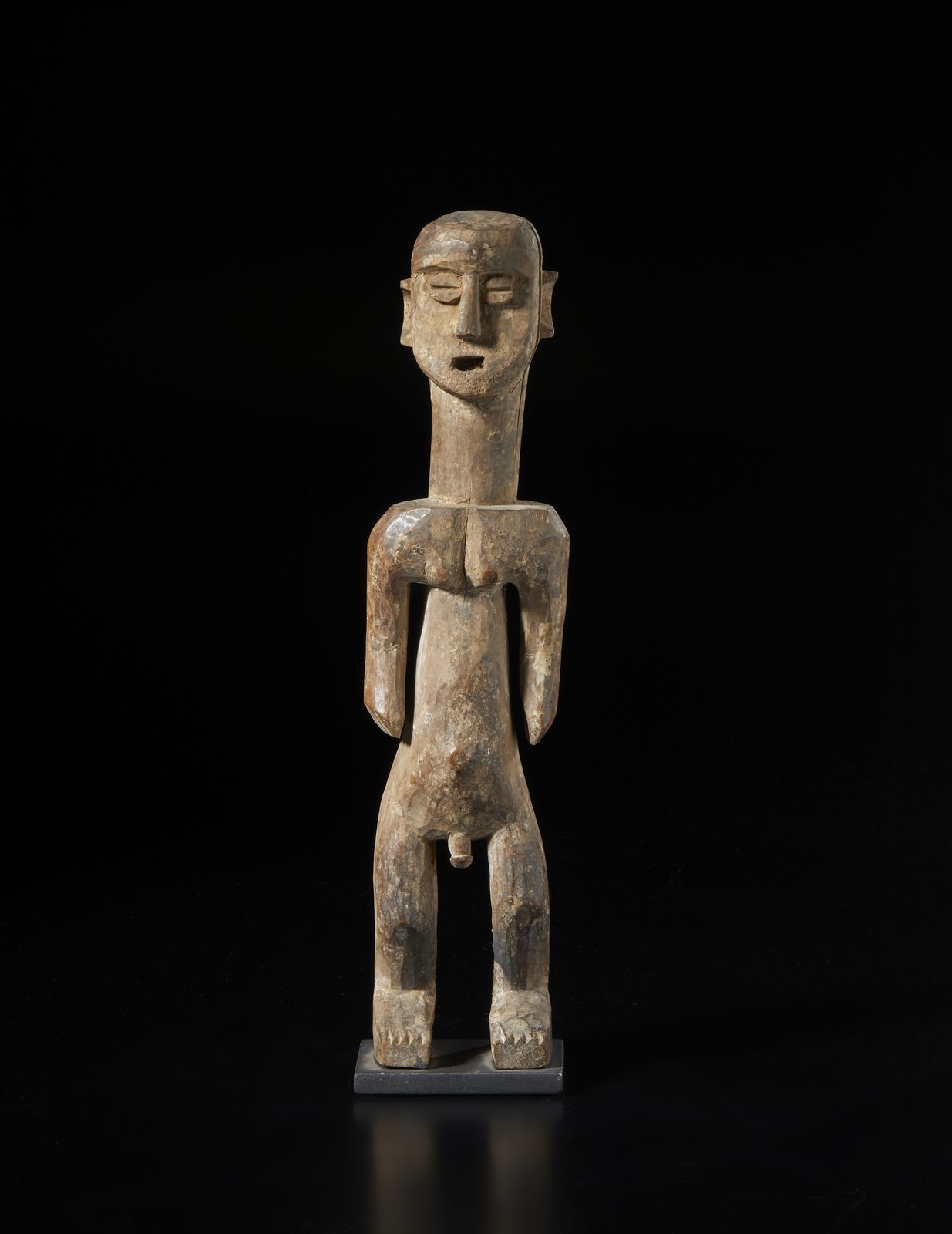 Scultura antropomorfa stilizzata.Legno duro a patina chiara.