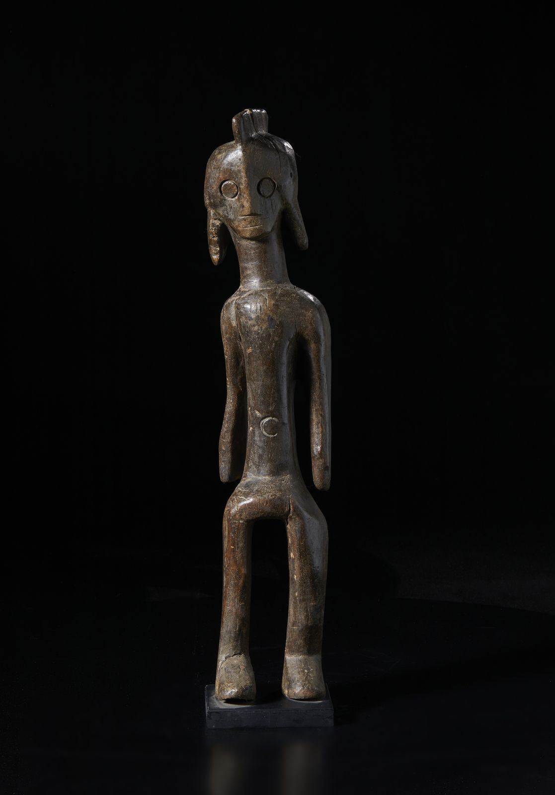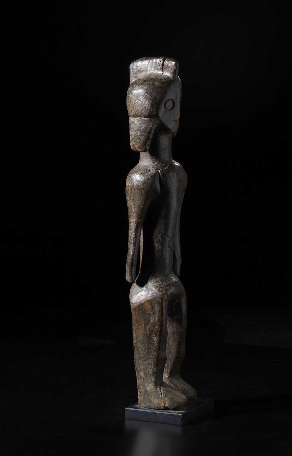 Scultura antropomorfa stilizzata. Legno duro a patina scura.