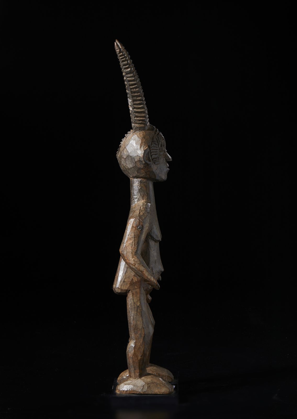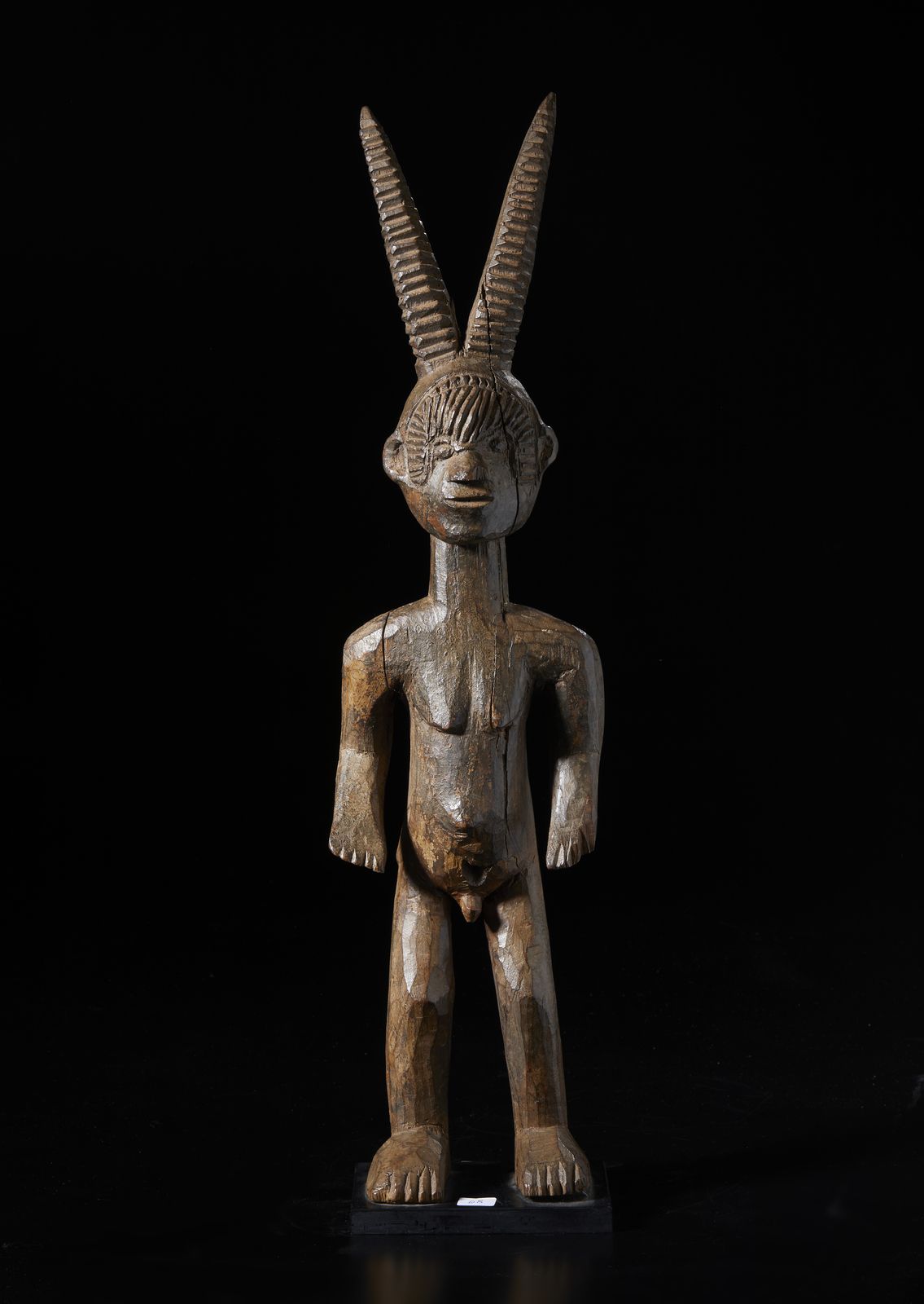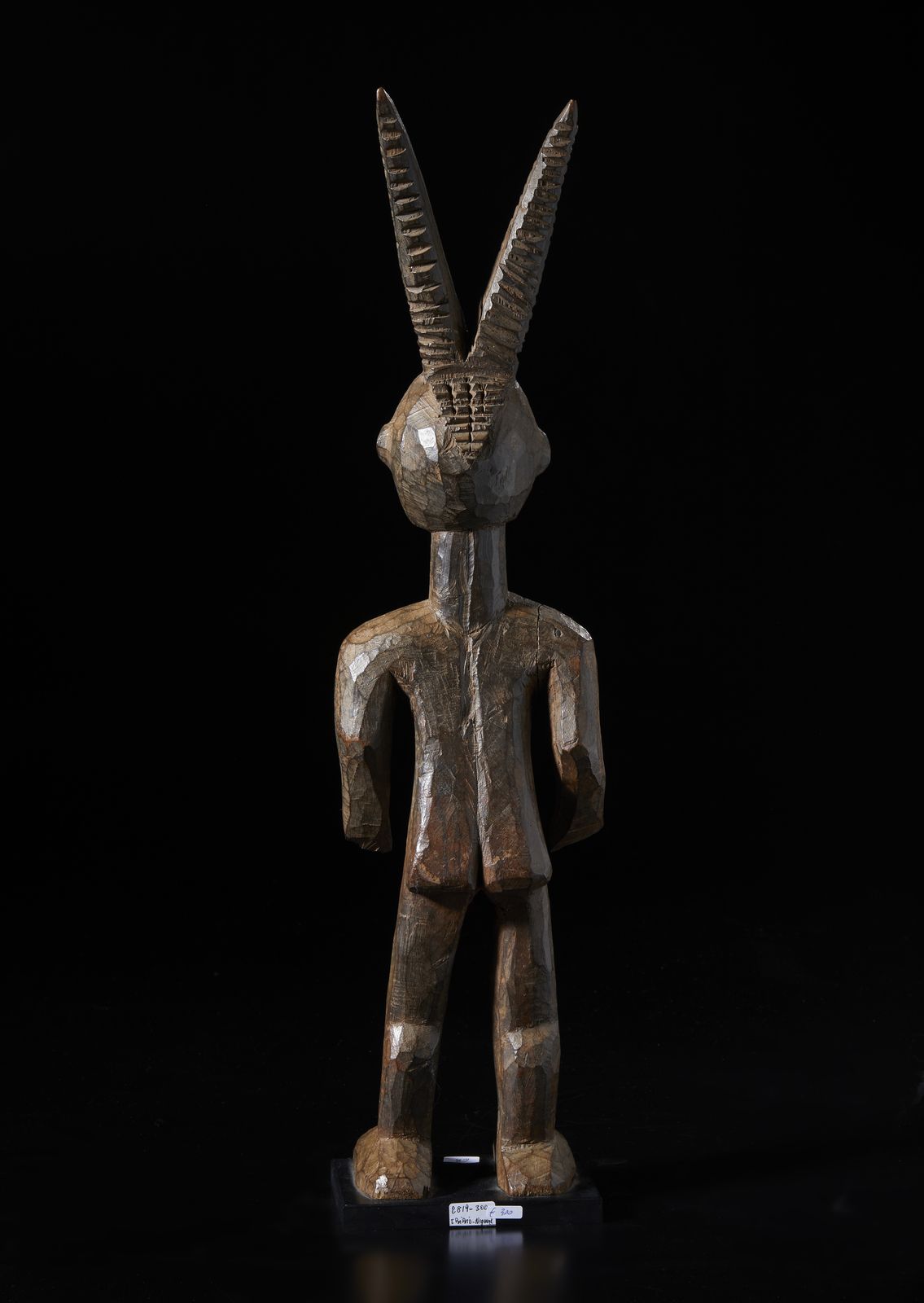 Scultura antropozoomorfa. Legno duro a patina scura.