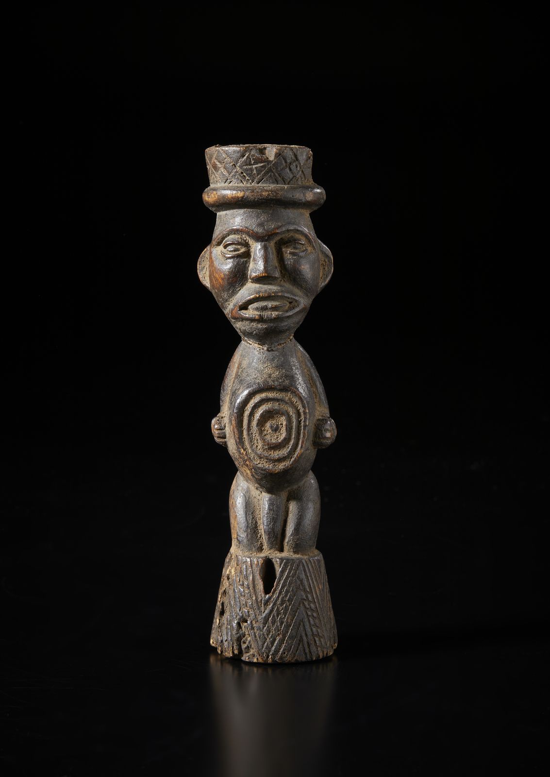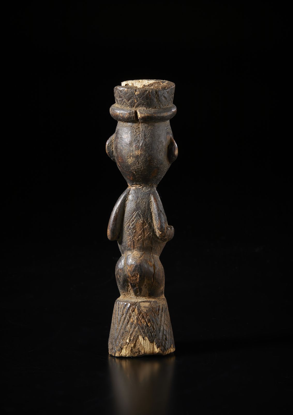 Scultura- feticcio di forma antropomorfa. Legno a patina marrone.
