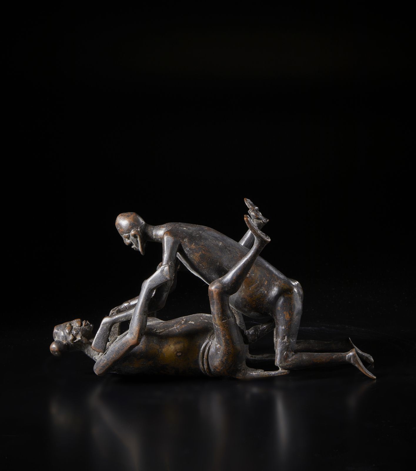 Scultura rappresentate scena erotica. Lega di rame.