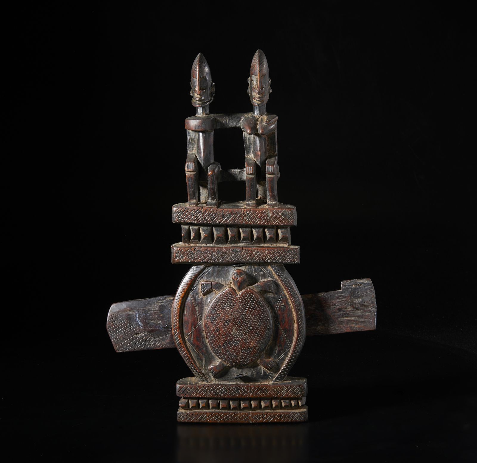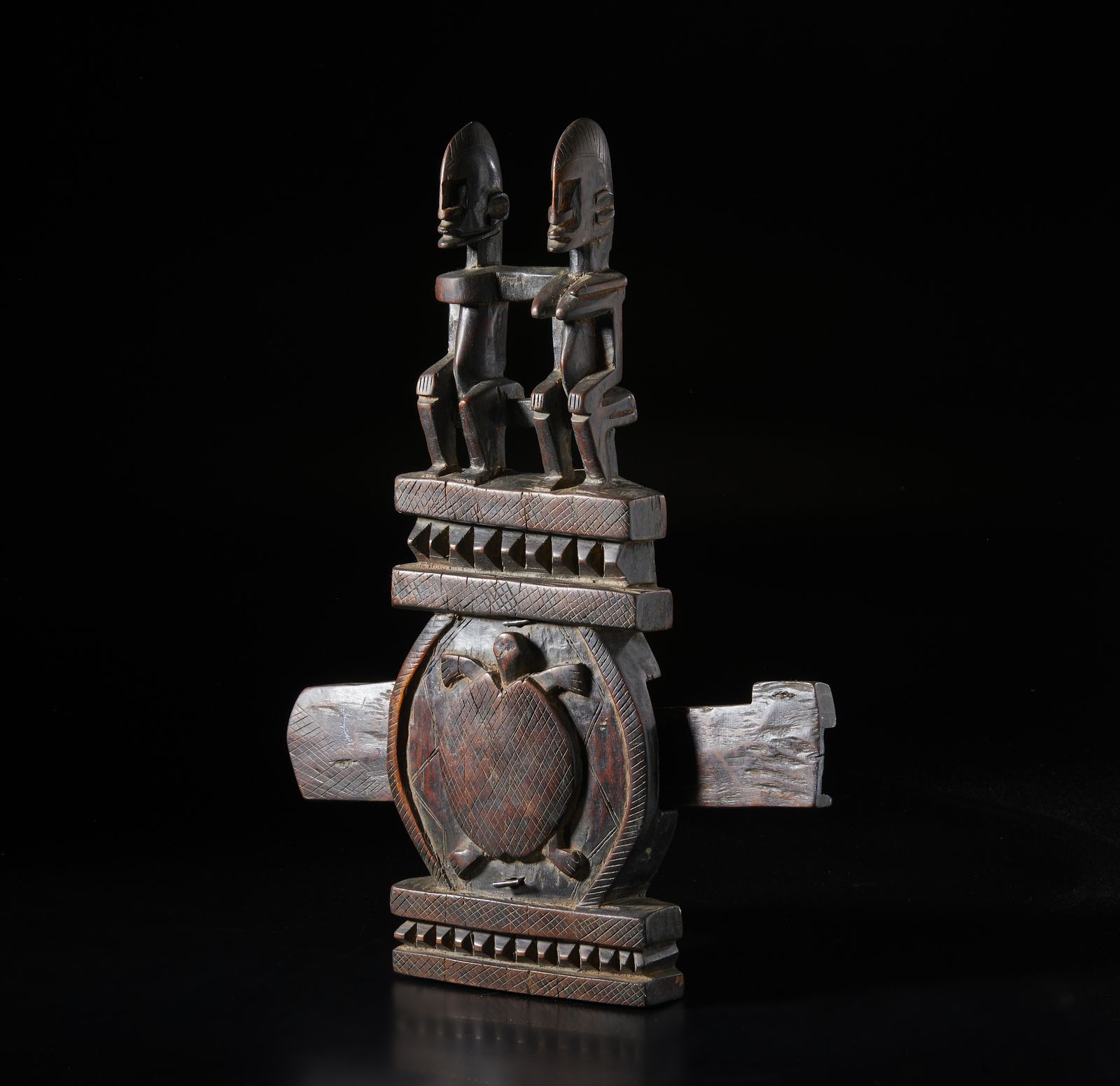 Serratura per porta di granaio con figure antropomorfe e zoomorfa (tartaruga). Legno [..]