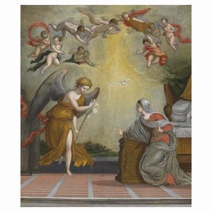 Scuola dell'Italia centrale, sec. XVI ANNUNCIAZIONE olio su tavola, cm 49,5x53 Central Italian school, 16th [..]