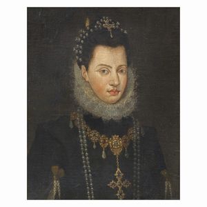 Artista della fine del sec. XVI RITRATTO DI NOBILDONNA olio su tela, cm 61,5x50 Painter of late 16th century [..]