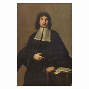 Scuola lombarda, sec. XVII RITRATTO DI ECCLESIASTICO olio su tela, cm 131,5X87 Lombard school, 17th century [..]