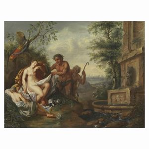 Scuola francese, sec. XVIII NINFE E SATIRI olio su tela, cm 30x38,5 French school, 18th century NYMPHS AND [..]