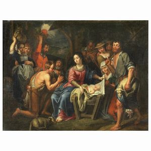 Scuola fiammniga, sec. XVII ADORAZIONE DEI PASTORI olio su tela, cm 98,5x128,5 Flemish school, 17th century [..]