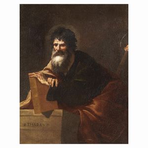 Pittore caravaggesco napoletano, sec. XVII SAN GIUDA TADDEO olio su tela, cm 127x102 Neapolitan caravagist artist, [..]