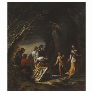 Scuola di Salvator Rosa, sec. XVIII PAESAGGIO CON FIGURE INTORNO A UNA TOMBA olio su tela, cm 74x66 School [..]