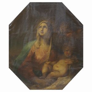 Scuola romana, sec. XVII MADONNA CON BAMBINO E SAN GIOVANNINO olio su tela ottagonale, cm 119x101 Roman school, [..]