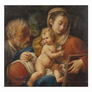 Scuola Veneta, sec. XVII SACRA FAMIGLIA olio su tela, cm 51x52 Venetian school, 17th century THE HOLY FAMILY [..]