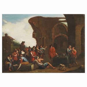 Scuola dei bamboccianti, sec. XVIII SCENA POPOLARE olio su tela, cm 50X71,5 Bambocciante school, 18th century [..]