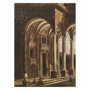 Cerchia di Viviano Codazzi, sec. XVII CAPRICCIO ARCHITETTONICO CON FIGURE olio su tela, cm 127,5x93 Circle of [..]
