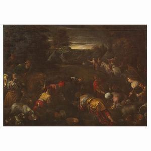 Scuola dei Bassano, sec. XVII VIAGGIO DI MOSE' olio su tela, cm 125x175 Bassano workshop, 17th century THE [..]