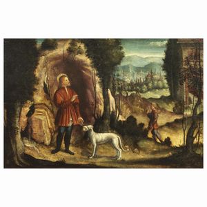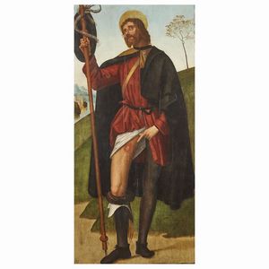 Scuola emiliana, sec. XVI SAN ROCCO olio su tavola, cm 169x148 Emilian school, 16th century SAINT ROC oil [..]
