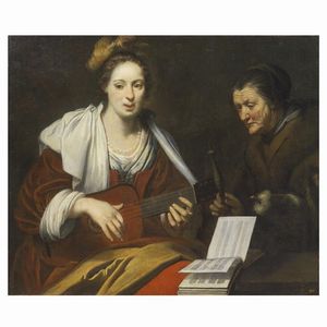Seguace di Bernardo Strozzi, sec. XVII SUONATRICE DI LIUTO olio su tela, cm 94,5x113 Follower of Bernardo Strozzi, [..]
