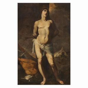 Scuola lombarda, sec. XVII SAN SEBASTIANO olio su tela, cm 150x100 Lombard school, 17th century SAINT SEBASTIAN [..]