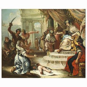 Domenico Fontebasso (Venezia 1738-1770) IL GIUDIZIO DI SALOMONE SALOMONE ADORA GLI IDOLI coppia di dipinti olio [..]