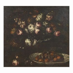 Attribuiti a Margherita Caffi (Cremona 1647 - Milano 1710) VASO DI FIORI VASO DI FIORI E PIATTO CON FRUTTA coppia [..]