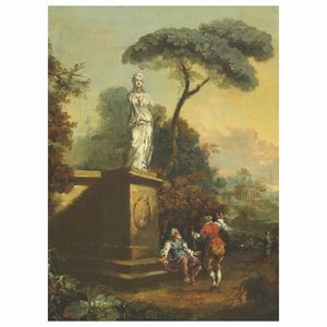 Artista nordico attivo a Roma, sec. XVIII PAESAGGIO CON SCULTURA E VIANDANTI olio su tela, cm 49x36,5 Northern [..]