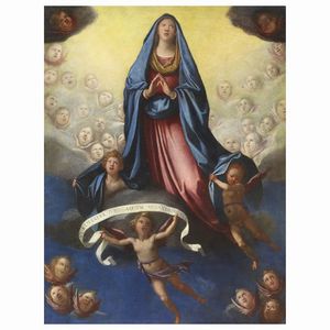 Attribuito a Jacopo Chimenti detto l'Empoli (Firenze 1551-1640) MADONNA IN GLORIA CON ANGELI olio su tela, cm [..]
