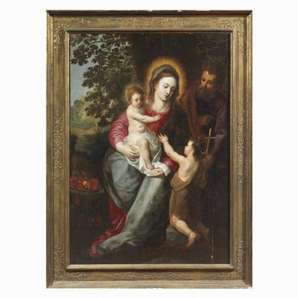 SACRA FAMIGLIA CON SAN GIOVANNINO IN UN PAESAGGIO