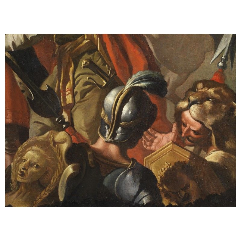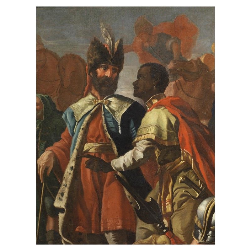 I colori vivaci, l'impianto scenografico della raffigurazione e l'espressionismo della figure permettono di accostare l'opera a quelle del pittore Francesco Solimena detto l'Abate Ciccio (1657-1747) esponente di spicco della pittura napoletana del Settecento fu artista molto apprezzato anche sia in Italia che in Europa.